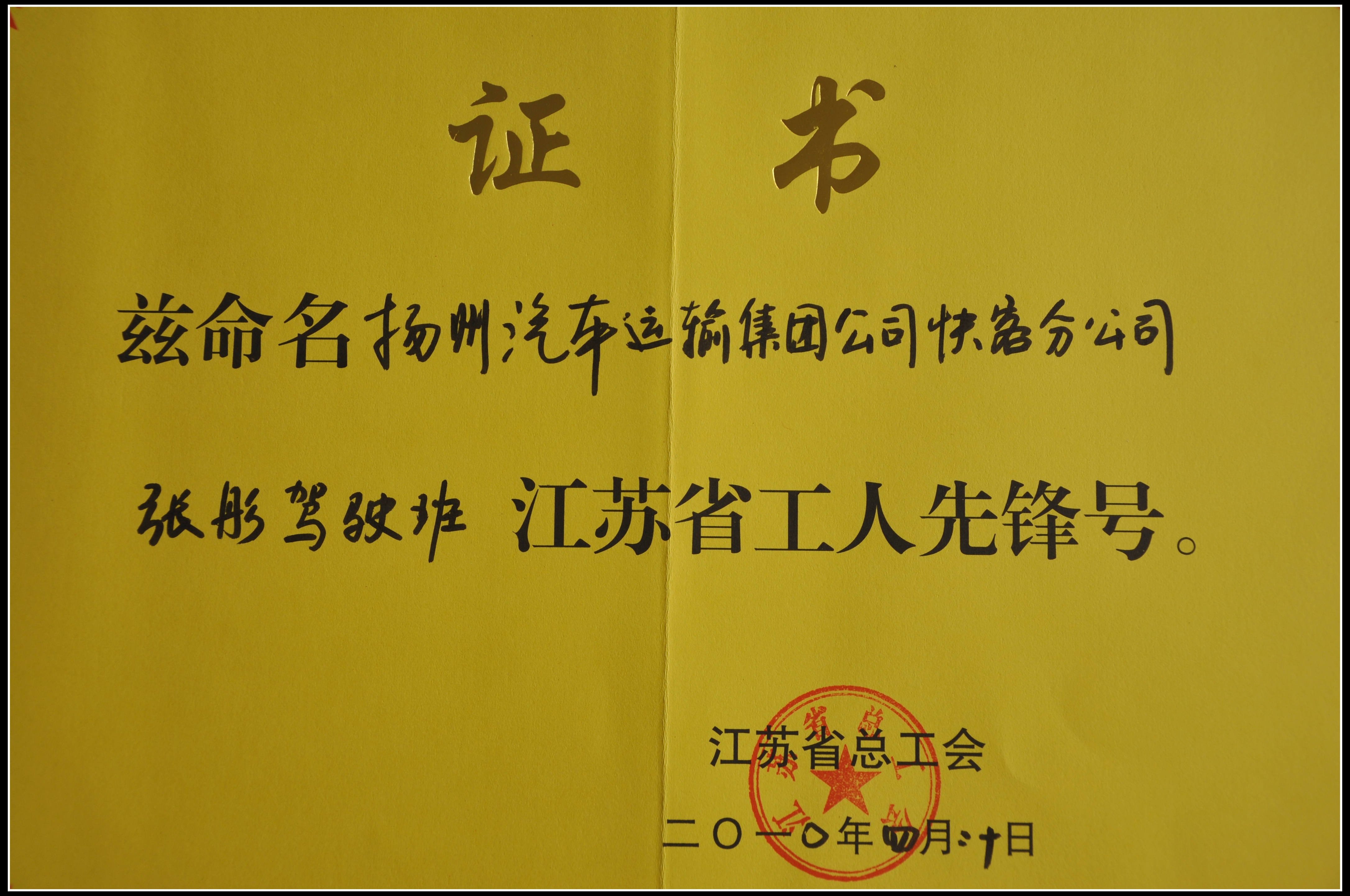 > 集團(tuán)公司快客分公司張彤駕駛班被江蘇省總工會評為工人先鋒號