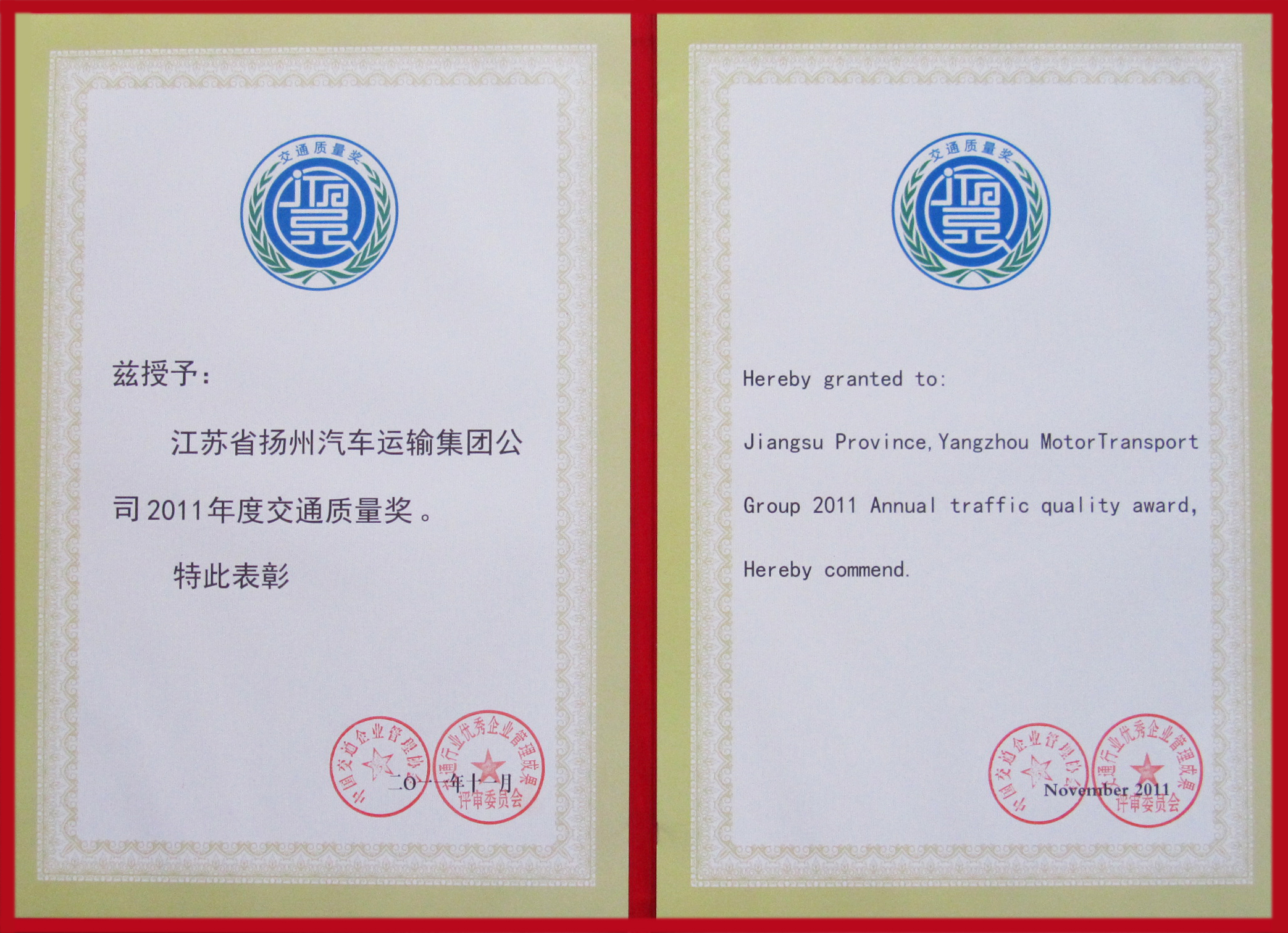 > 公司喜得交通質量獎