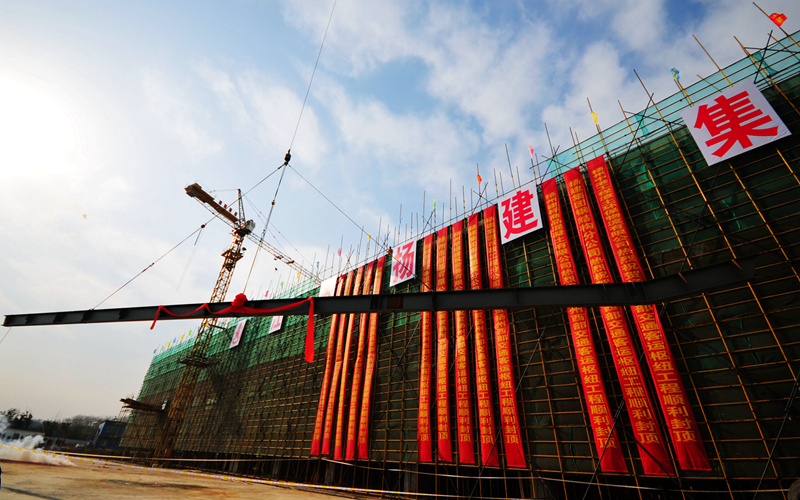 最后一根40米大梁吊裝成功 揚(yáng)州西部交通客運(yùn)樞紐主體建筑封頂
