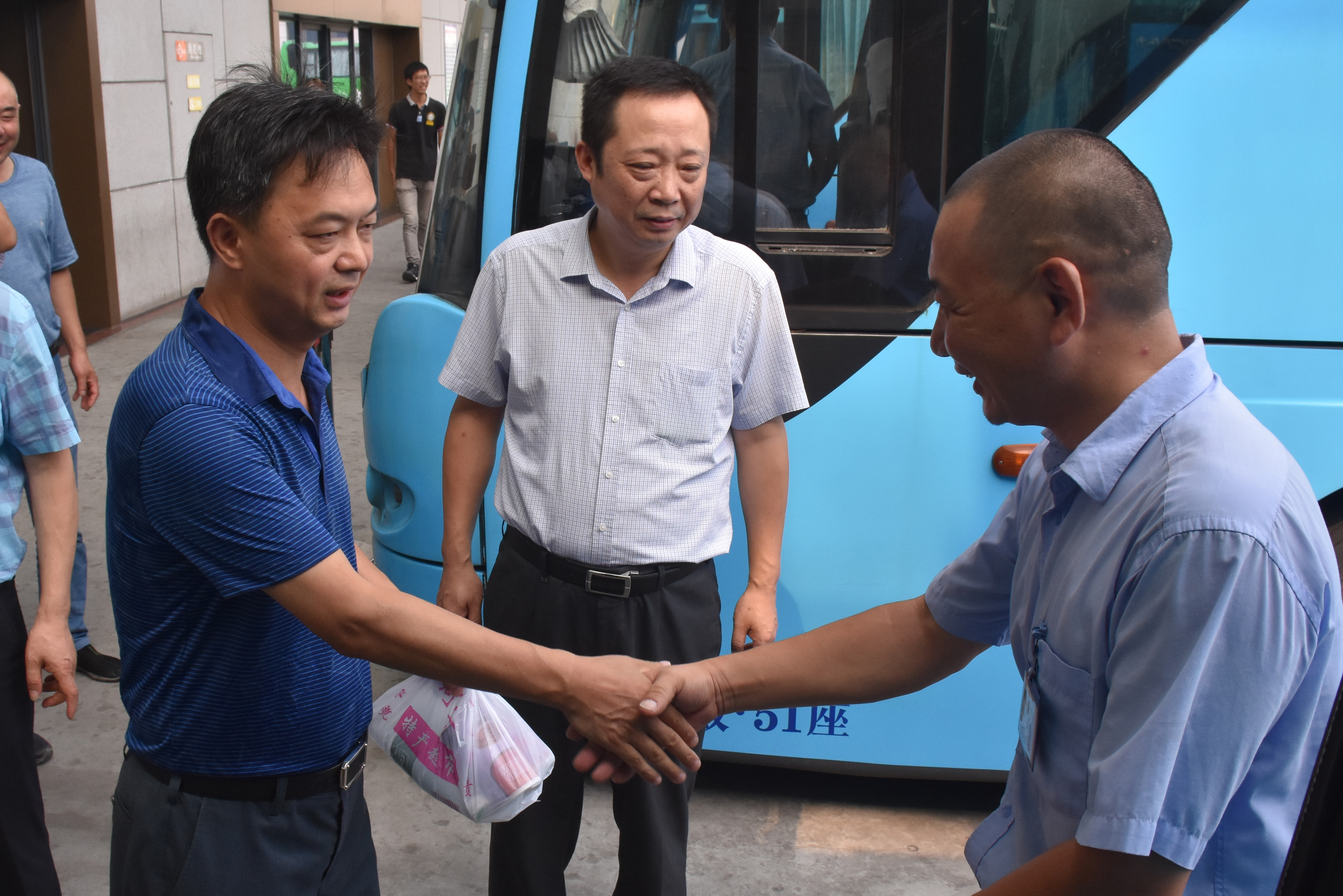 凌董事長一行對西部樞紐揚州站的候車廳、安檢口、換乘中心等部位進行巡視。發(fā)車場上,午后的驕陽下,一輛輛大客車整裝待發(fā),發(fā)動機艙里涌出陣陣熱浪,凌董事長逐一給駕駛員送上防暑降溫用品,并一再叮囑要注意夏季“三防”,確保行車安全。隨后,董事長一行來到西部樞紐公交場站進行慰問。