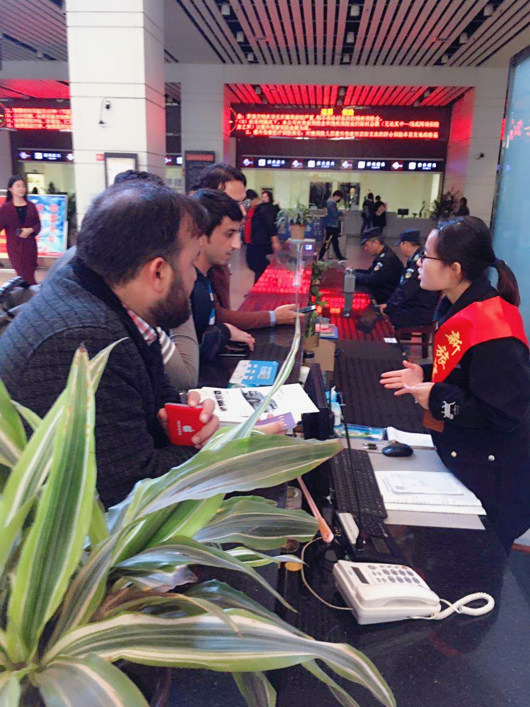 服務(wù)員溫靜先安撫他們不要著急,在和他們溝通后得知,他們需要去南京參加活動(dòng),由于人生地不熟,南京又有好幾個(gè)車站,一時(shí)讓他們無(wú)從選擇,急得是滿頭大汗,生怕錯(cuò)過(guò)了時(shí)間。在知道他們最終目的地是南京農(nóng)業(yè)大學(xué),溫靜上網(wǎng)查詢后,幫助他們規(guī)劃了線路,先買南京南站的車票,到達(dá)后再轉(zhuǎn)乘地鐵2號(hào)線就能到達(dá)目的地附近。
