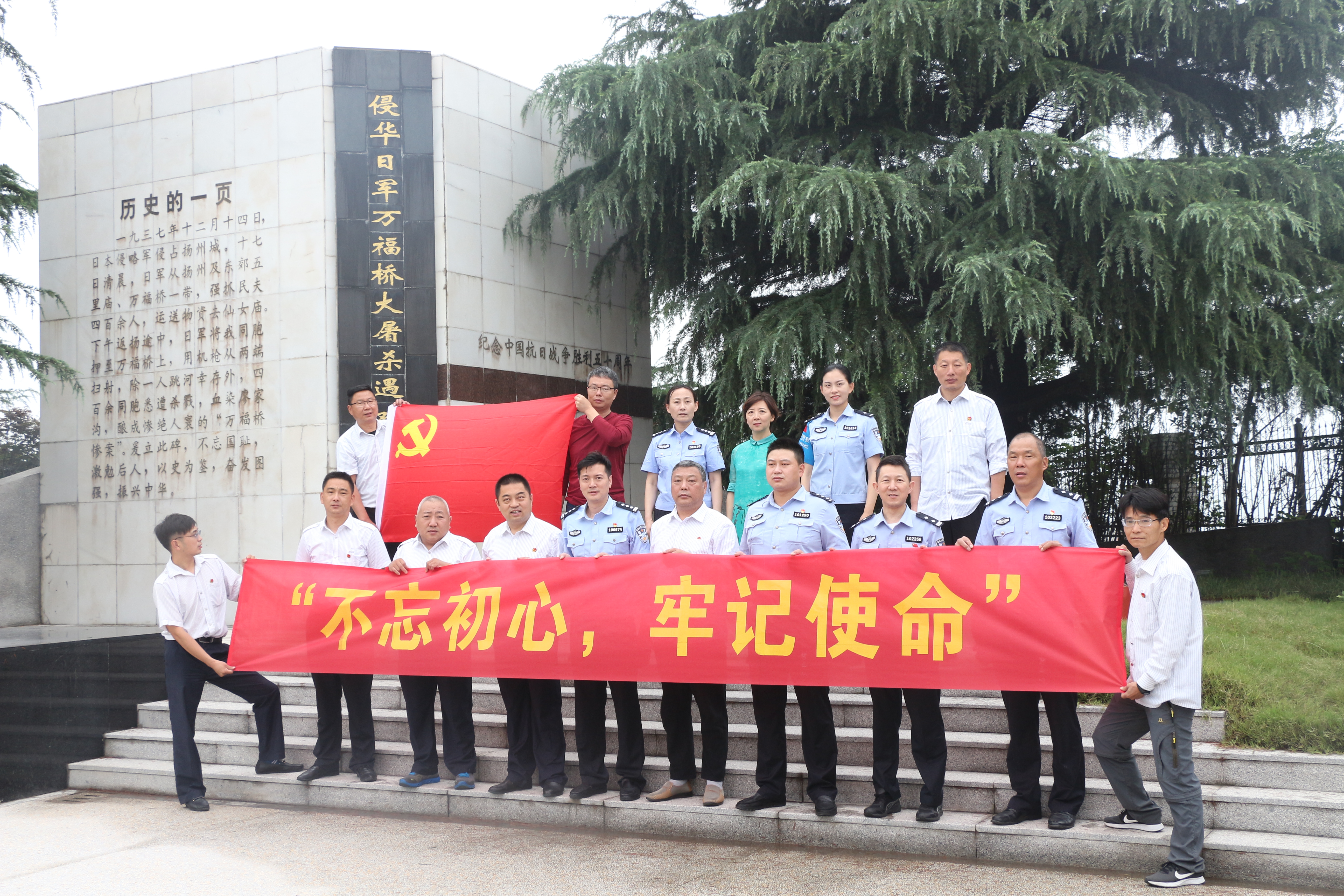 “我們來到萬福閘紀(jì)念碑前是為了祭奠一段歷史,紀(jì)念那些在83年前,揚(yáng)州淪陷,在萬福橋大屠殺中遇難的鄉(xiāng)親。”“七一”前夕,東站黨支部聯(lián)合東站派出所黨支部黨員來到侵華日軍萬福橋大屠殺遇難同胞紀(jì)念碑前,上了一堂特殊的課堂。