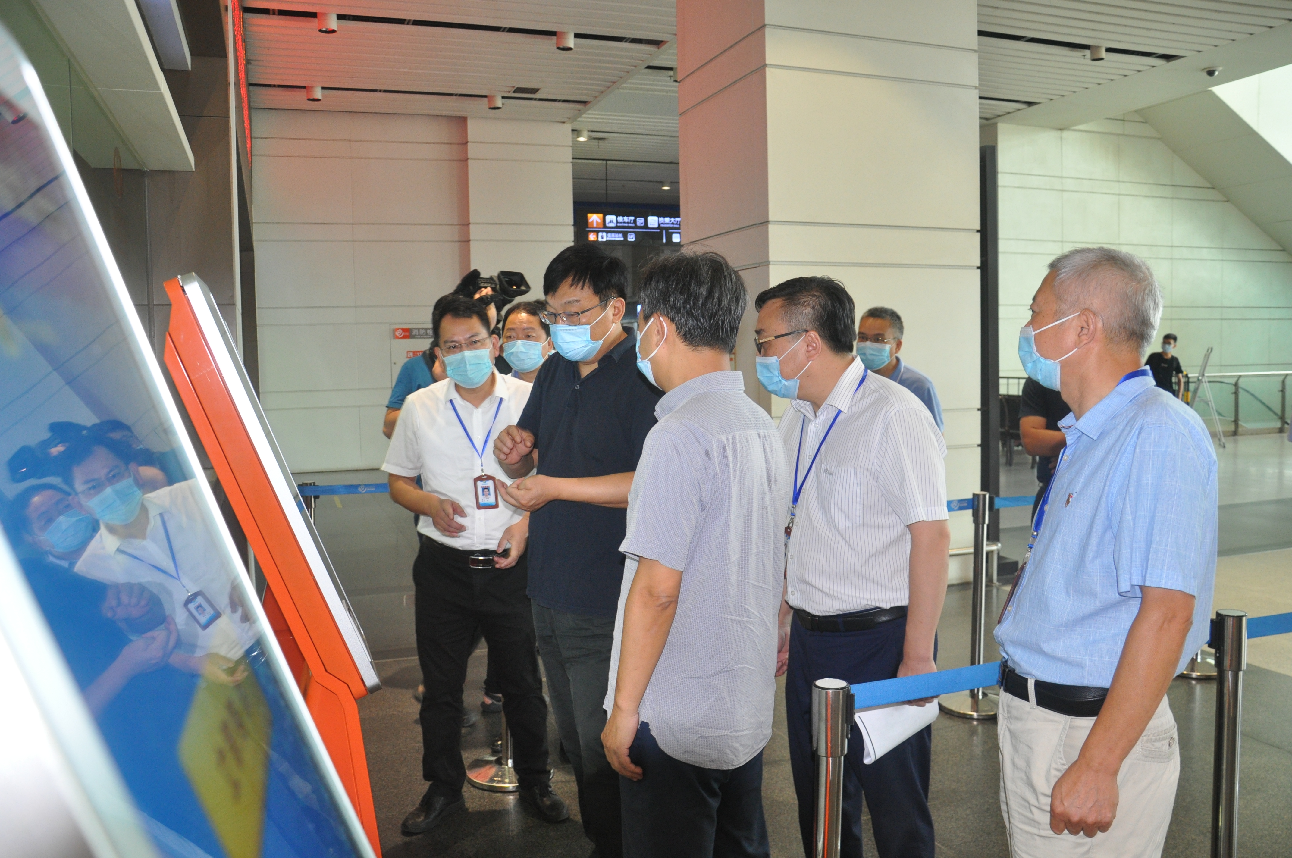 檢查組首先來(lái)到揚(yáng)州站進(jìn)出口、售票大廳,了解志愿站點(diǎn)設(shè)置、志愿服務(wù)情況,從文明旅游宣傳資料張貼,到從業(yè)人員文明用語(yǔ),禮貌待人服務(wù)規(guī)范,以及旅客投訴窗口、投訴電話設(shè)置等細(xì)節(jié)都進(jìn)行了細(xì)致檢查。在二樓候車大廳丁副市長(zhǎng)一行檢查了候車大廳的整體衛(wèi)生環(huán)境,廣告標(biāo)語(yǔ)張貼、發(fā)車人員的儀容儀表等細(xì)節(jié)。丁副市長(zhǎng)還專門(mén)察看了母嬰室,對(duì)母嬰室里面配備物品的安全度、方便度、適用度進(jìn)行了解。
