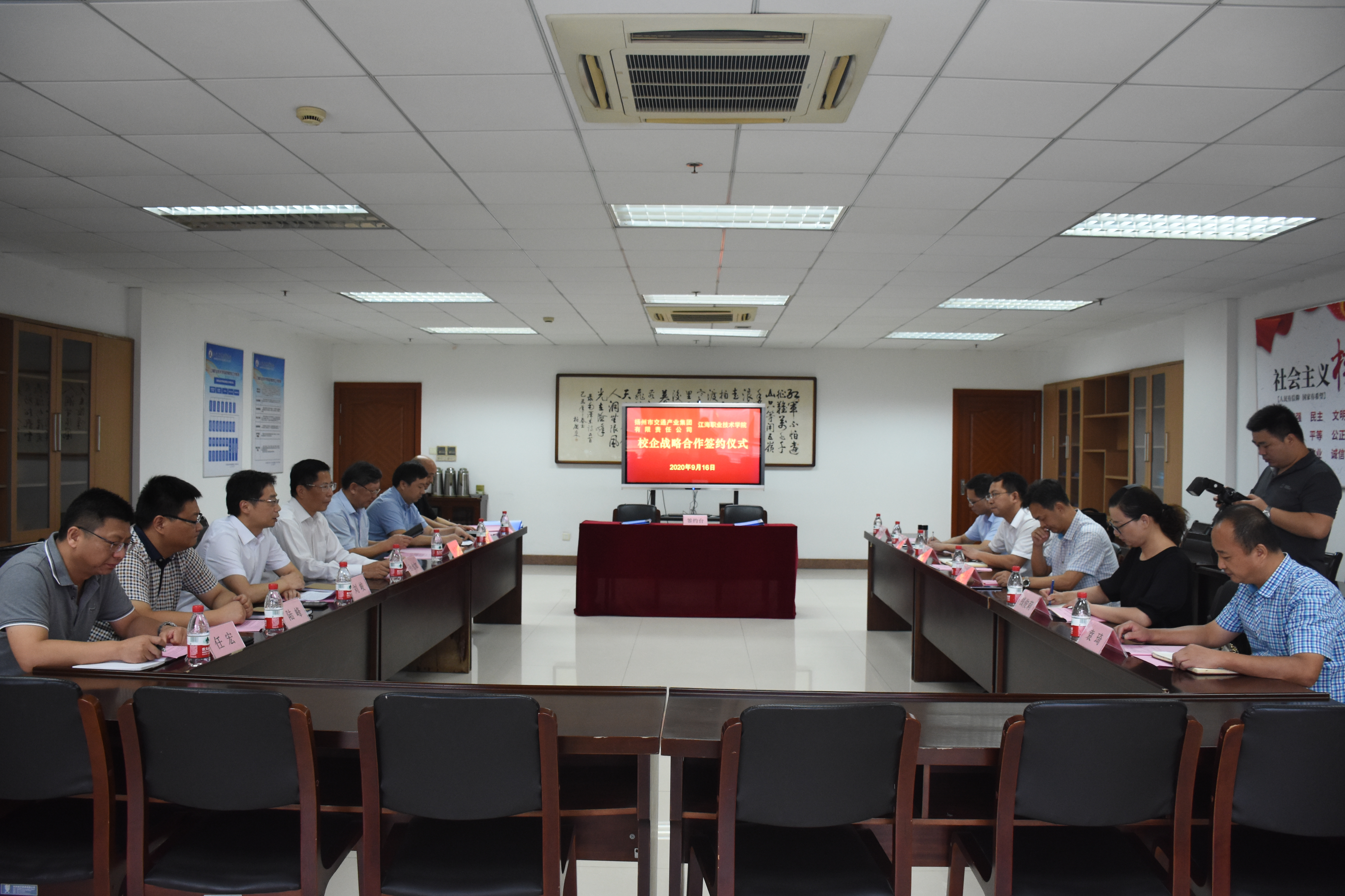 9月16日,揚州市交通產(chǎn)業(yè)集團(tuán)有限責(zé)任公司與江海職業(yè)技術(shù)學(xué)院,校企戰(zhàn)略合作暨駕駛培訓(xùn)項目簽約儀式在江海學(xué)院隆重舉行。江海學(xué)院董事長、校長孫永如,常務(wù)副校長、黨委副書記余如進(jìn),副校長劉峻等校方領(lǐng)導(dǎo),交通產(chǎn)業(yè)集團(tuán)黨委書記、董事長凌衛(wèi)東,交通產(chǎn)業(yè)集團(tuán)副總經(jīng)理兼揚汽集團(tuán)黨委書記、董事長龔宇峰,揚汽集團(tuán)黨委副書記顧懷及交通產(chǎn)業(yè)集團(tuán)、揚汽集團(tuán)相關(guān)負(fù)責(zé)人出席簽約儀式。