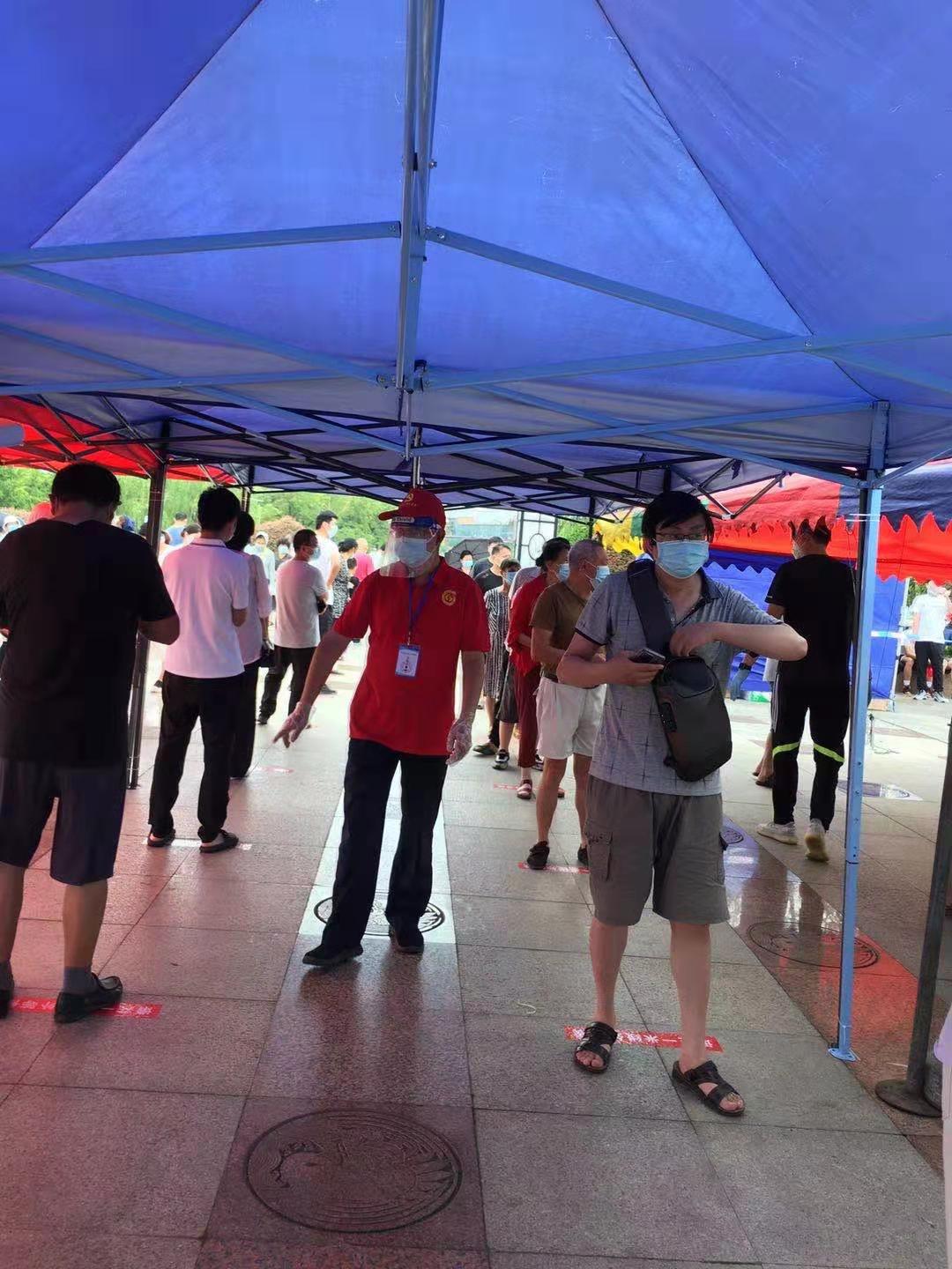 揚州疫情爆發(fā),牽動著每個人的心,黃建軍是揚州站的值班站長,作為一名老黨員,主動報名加入防疫阻擊戰(zhàn),于8月3日前往邗江區(qū)邗上街道進行志愿服務(wù),深夜在臨時增加的來鶴臺廣場核酸檢測點貼地標,準備各種用品,大、小垃圾桶等,協(xié)助社區(qū)做好準備工作。第二天早上5點,在五里社區(qū)來鶴臺廣場開展第三次核酸檢測志愿服務(wù)工作,負責4千多戶居民的秩序維護。8月7日,他又前往邗上街道蘭莊社區(qū)望月苑核酸檢測點參加志愿服務(wù),用平凡的堅守,打造戰(zhàn)“疫”路上的最強盾牌。