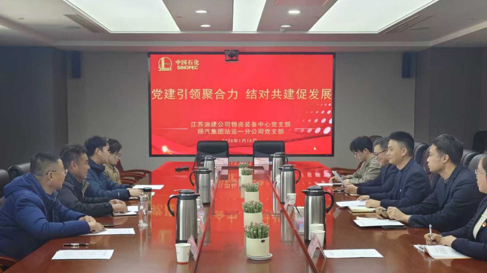 座談環(huán)節(jié),雙方圍繞業(yè)務(wù)工作與黨建亮點展開交流。江蘇油建物資裝備中心黨支部介紹了主營業(yè)務(wù)與黨建品牌創(chuàng)建經(jīng)驗,重點分享黨建融入安全生產(chǎn)的實踐路徑。站運一分公司黨支部立足車站運營,介紹了“星級服務(wù) 溫馨之旅”黨建微品牌建設(shè)情況,并推介了集團(tuán)相關(guān)業(yè)務(wù)。隨后,雙方現(xiàn)場簽署黨建共建協(xié)議,明確將以共建為抓手,拓展黨建與業(yè)務(wù)、安全、隊伍建設(shè)的結(jié)合點,以高質(zhì)量黨建引領(lǐng)高質(zhì)量發(fā)展。